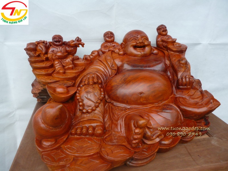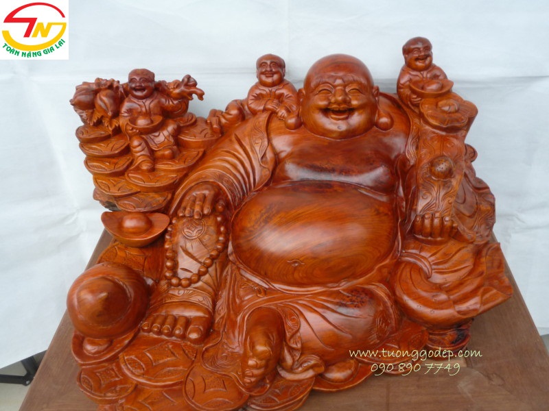 Phật Di Lặc tam Phúc và hô lô (Gỗ hương, ngang 70cm x sâu 56cm x cao 38cm)