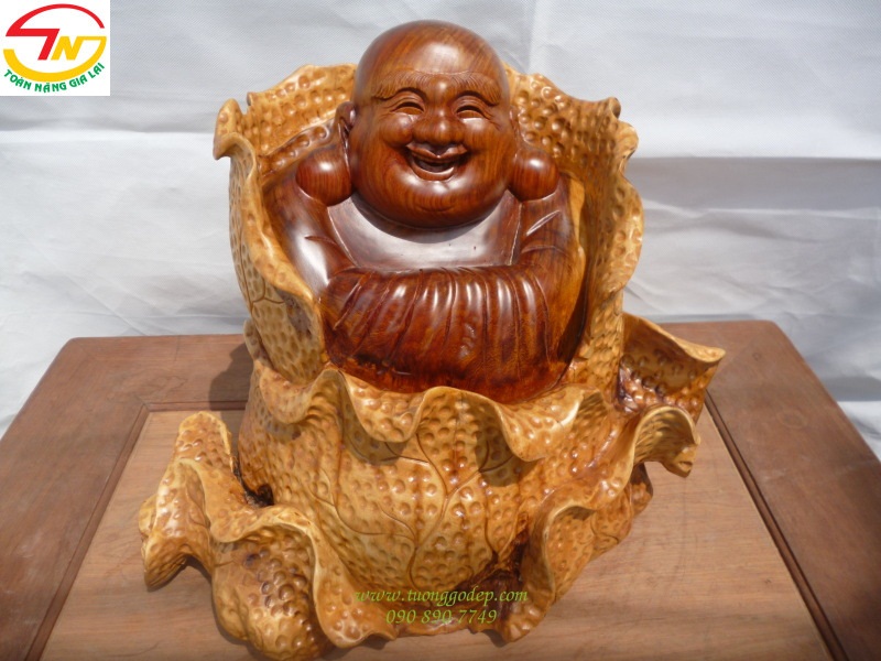 Phật Di Lặc trong bắp cải (Gỗ hương màu tự nhiên rất độc đáo - Cao 38cm x ngang 45cm)
