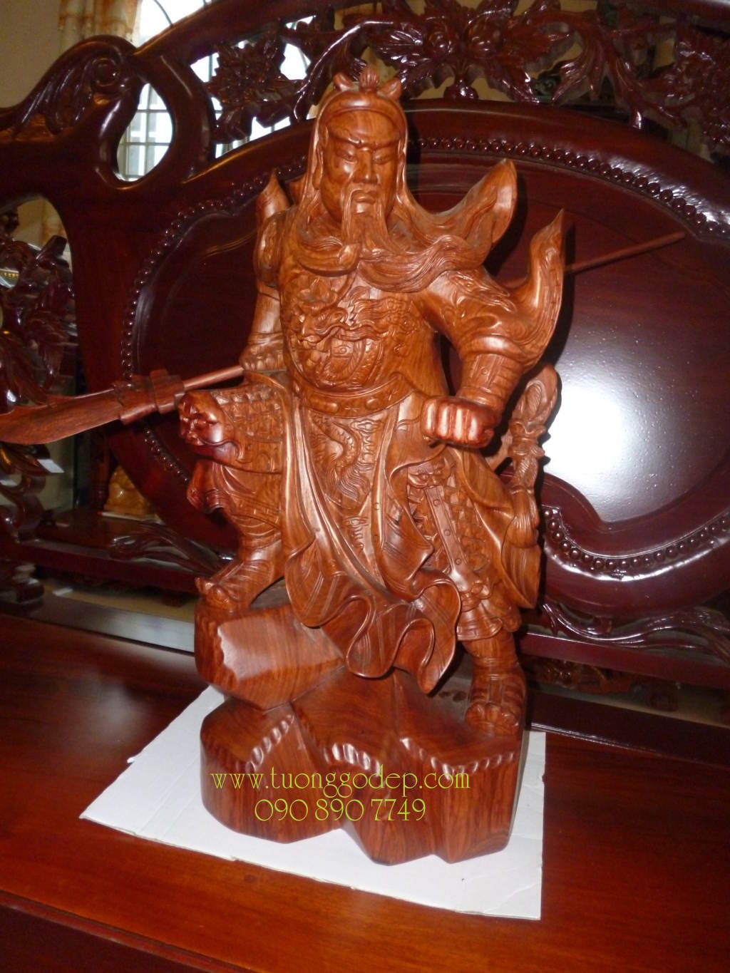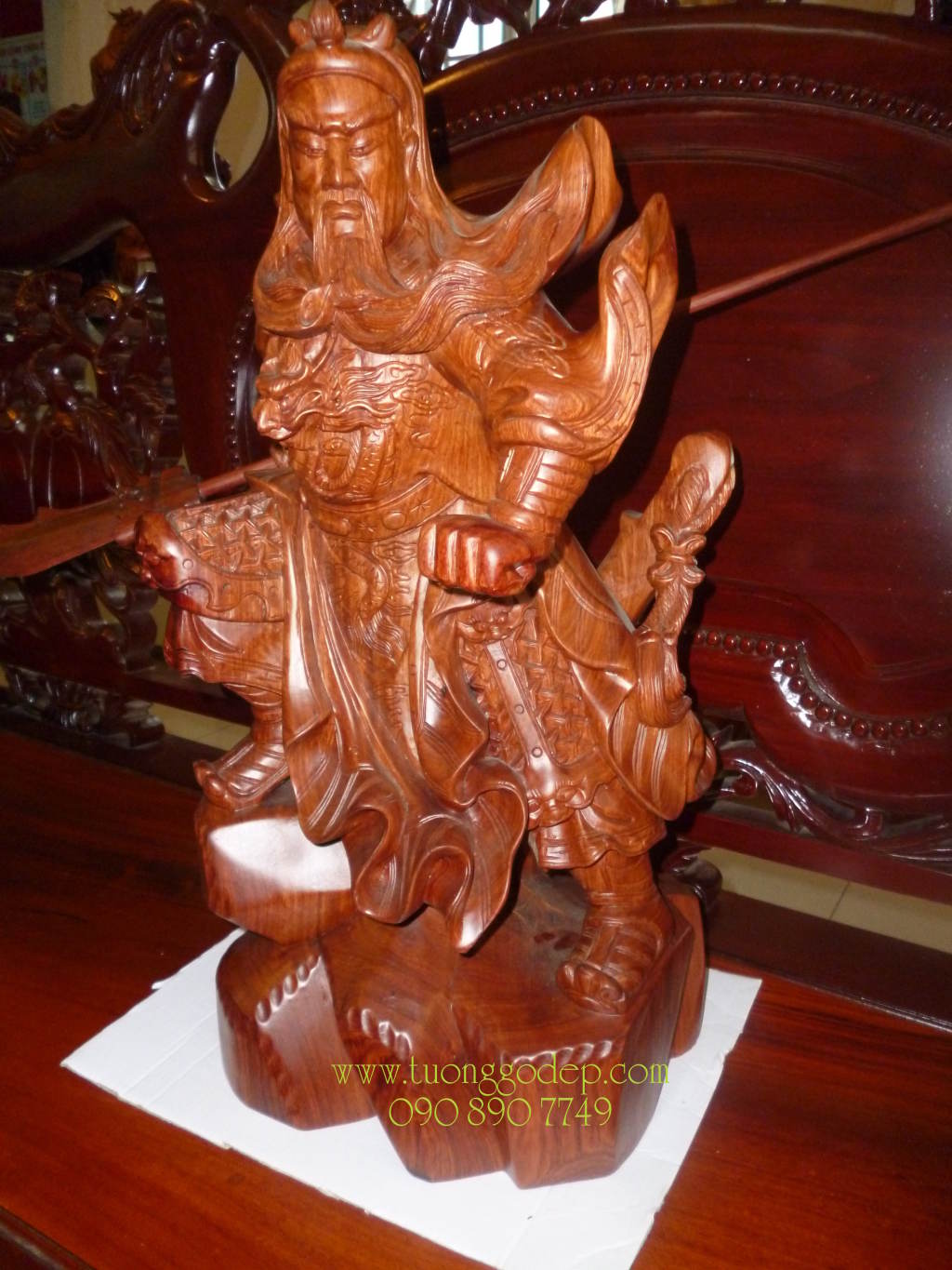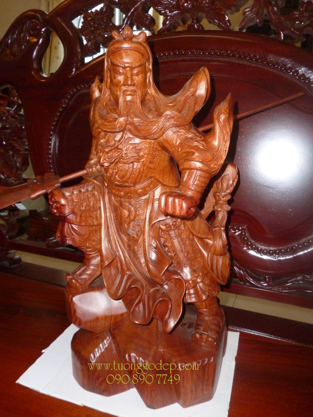Tượng Quan Công bằng gỗ hương, cao 50cm