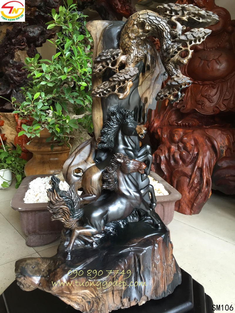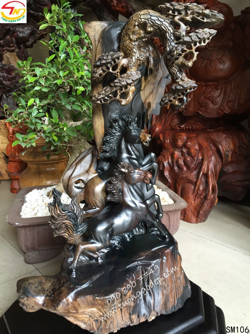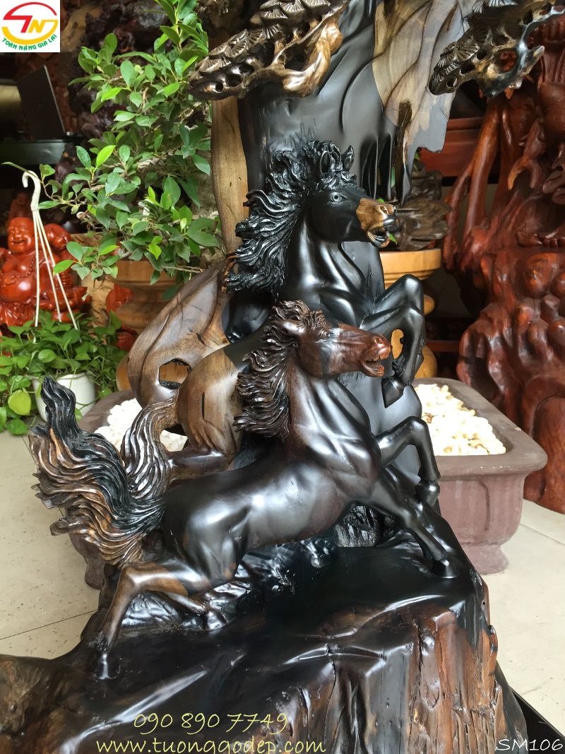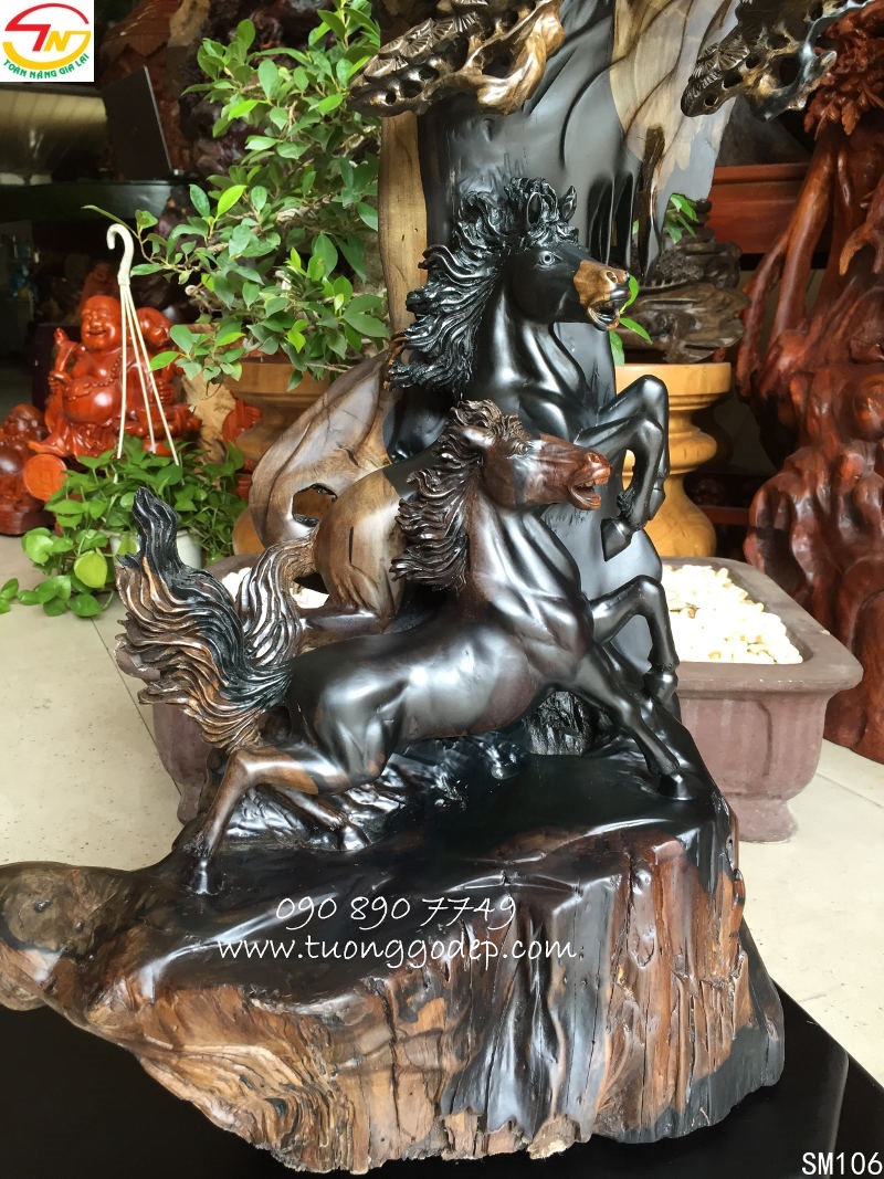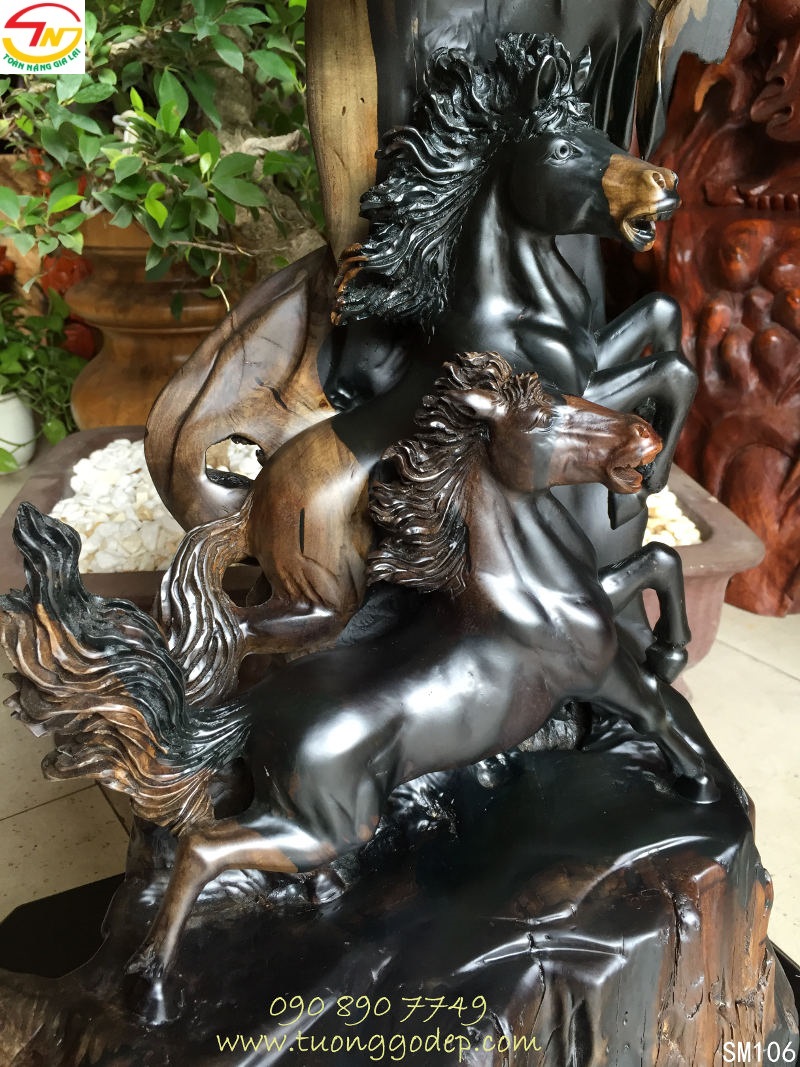 Chất liệu: Gỗ mun sừng. [Cách nhận biết gỗ quý] Về chất liệu, ngựa làm từ ngọc, gỗ và đồng là tốt, không dùng ngựa có chất liệu bằng cao su, nhựa hay những chất liệu không có giá trị vì chúng không có một chút linh lực nào