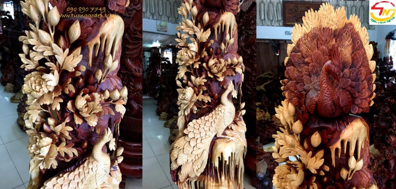 Phượng hoàng vũ - gỗ hương, cao 1.2m x rộng 40cm
