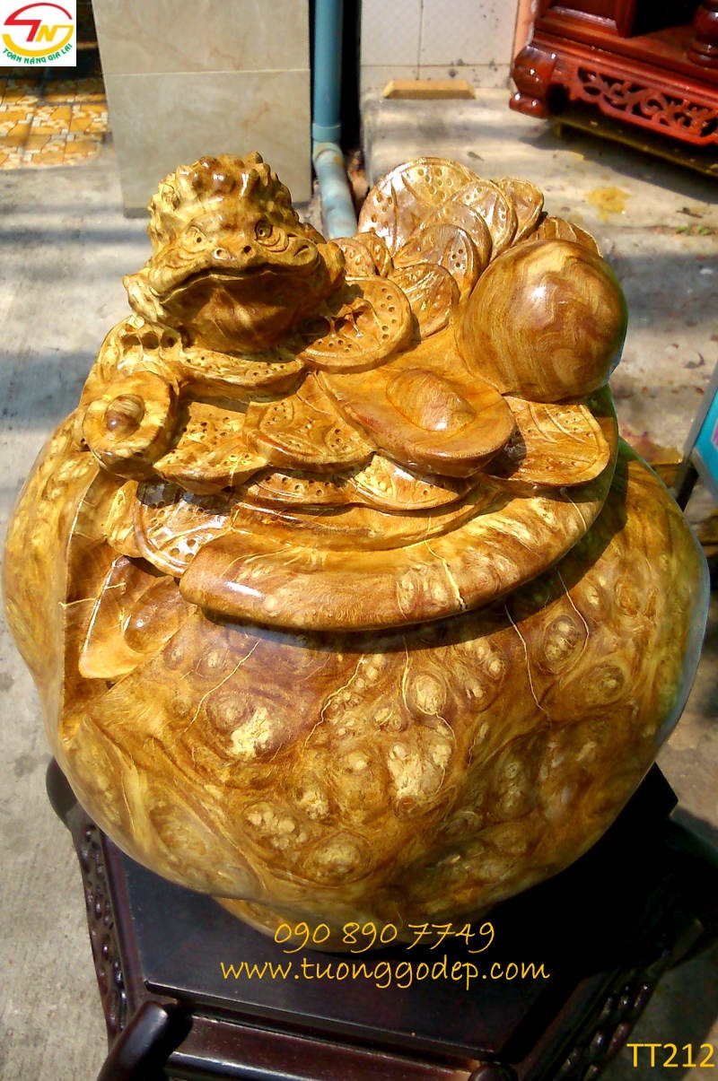 Thiềm thừ ngồi bình phú quý, gỗ nu nghiến (cao 39cm x rộng 25cm)