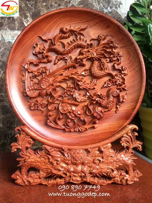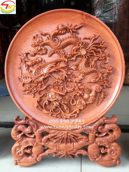 Đĩa gỗ Tứ Linh, Long, Lân, Quy, Phụng