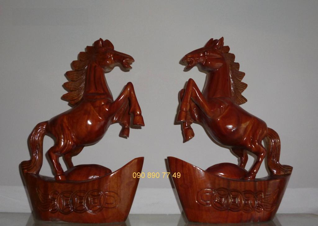 Đôi ngựa bát vàng (Gỗ gõ đỏ, ngang 22cm, cao 30cm)