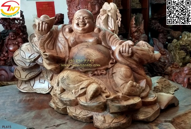 Tượng gỗ nu xá xị Phật Di Lặc, cao 33cm x ngang 62cm