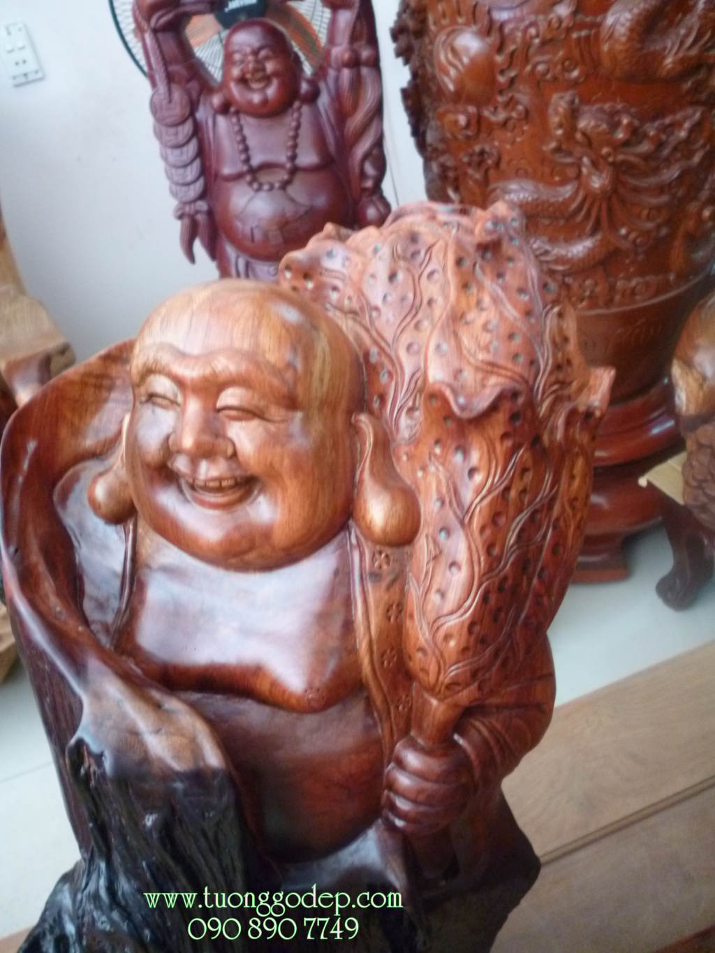 Tượng gỗ Phật Di Lặc mang bắp cải, Gỗ hương - Cao 52cm
