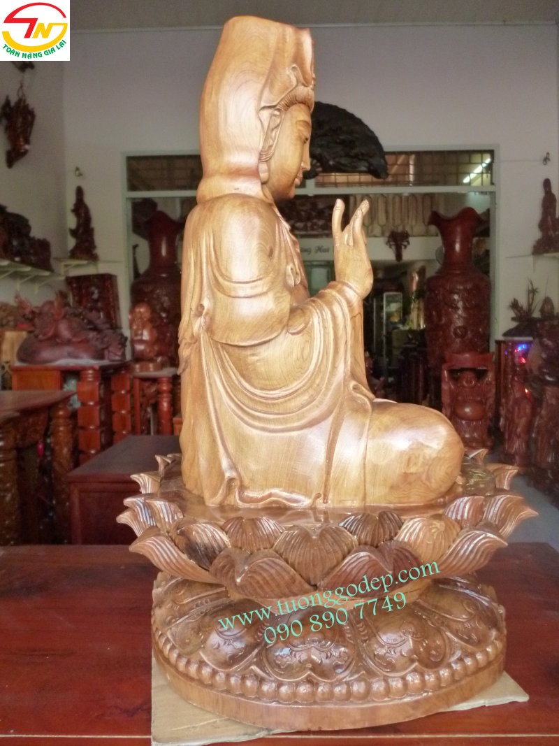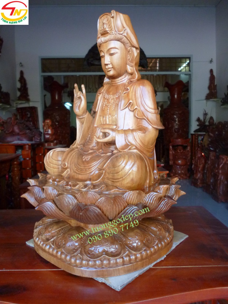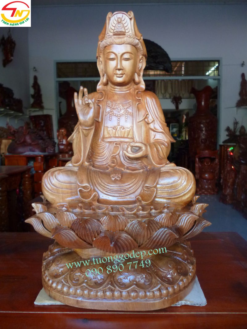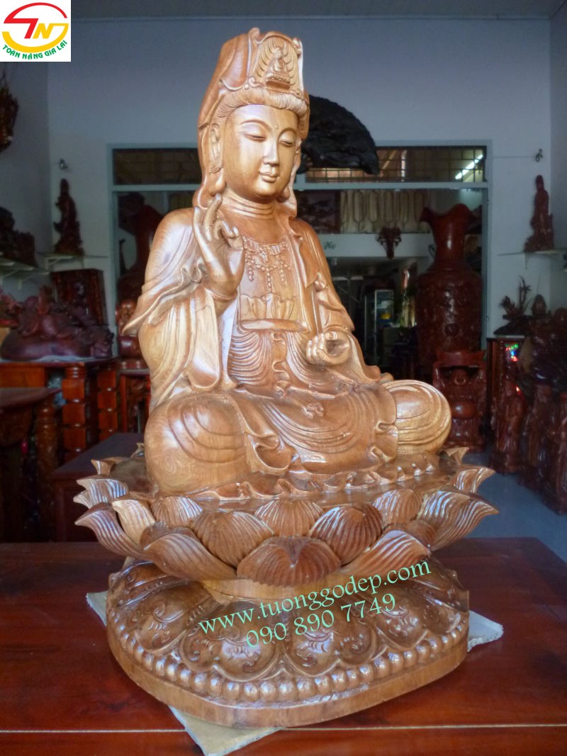 Tượng Gỗ Phật Quan Âm (Gỗ hồi, cao 42cm)