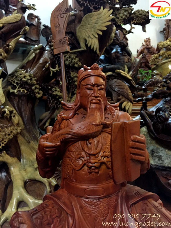 Tượng Quan Công đọc sách giá rất rẻ nhưng vẫn được làm cầu kỳ tinh sảo, Nếu bạn có gỗ sẵn thuê thợ làm với nét đục tượng tự giá không hề rẻ hơn sản phẩm này...