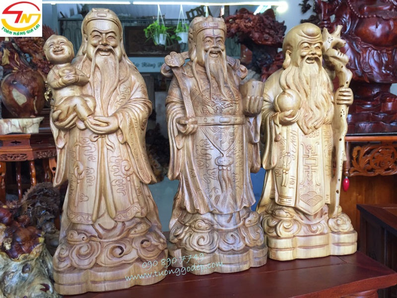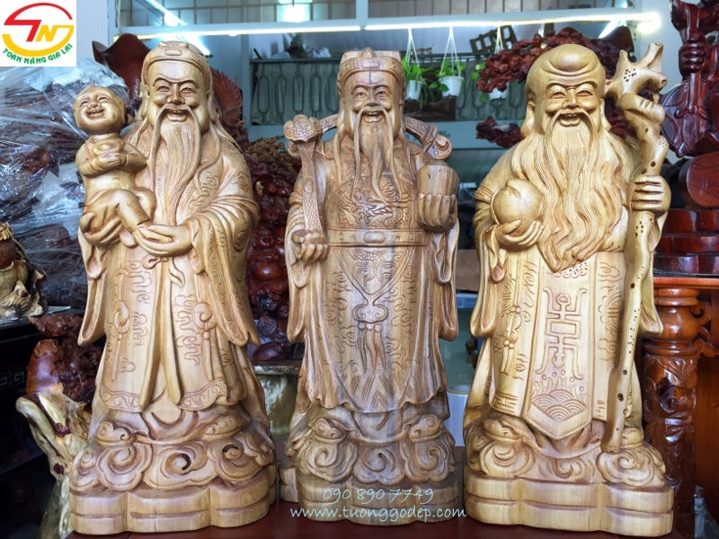 Ông Phúc thường được đặt ở giữa tượng trưng cho sự may mắn, tốt lành. Tương truyền, Ông Phúc là một quan thanh liêm của triều đình. Theo quan niệm xưa, nhà đông con là nhà có phúc nên đôi khi còn thấy có một đứa trẻ đang nắm lấy áo Ông Phúc, hoặc nhiều đứa trẻ vây quanh ông hay là có hình ảnh con dơi bay xuống ông (dơi phát âm giống "phúc").