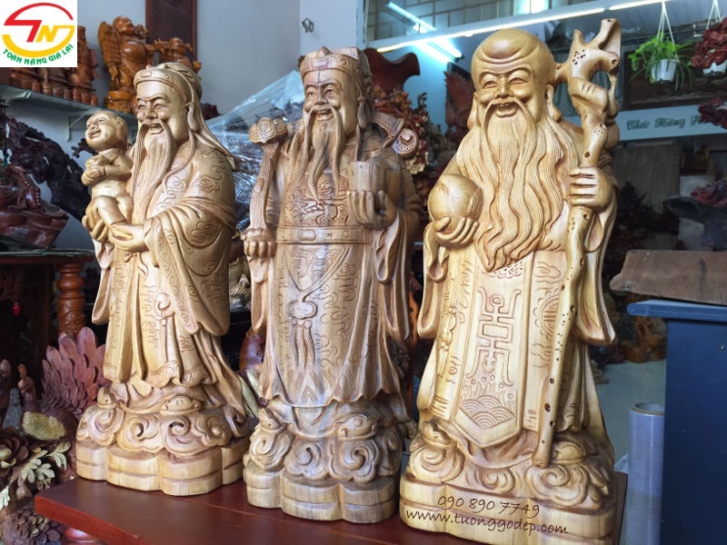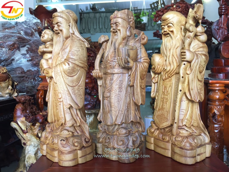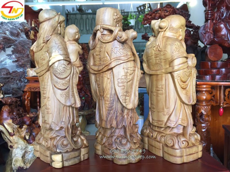 Tượng Tam Đa bằng gỗ bách xanh - cao 40cm
