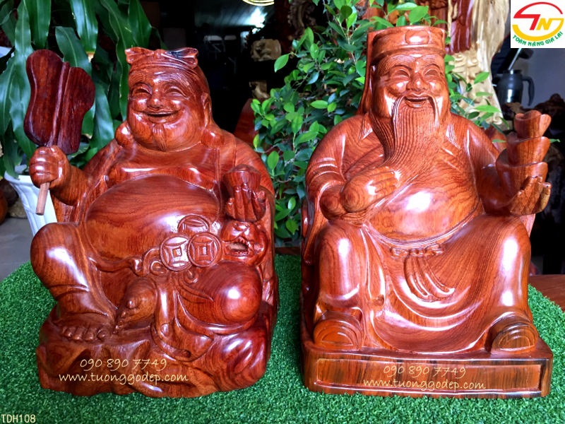 Thần tài ông địa bằng gỗ hương cao 24.5cm x vuông 16cm. Tượng Thần tài ông địa bằng gỗ hương Gia Lai, được làm tinh xảo, gương mặt phúc hậu
