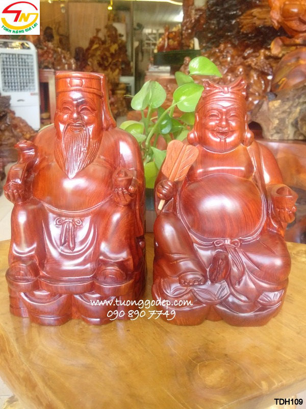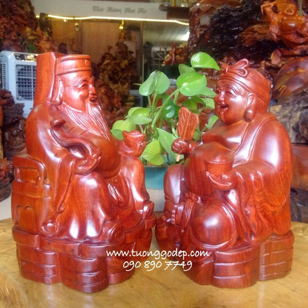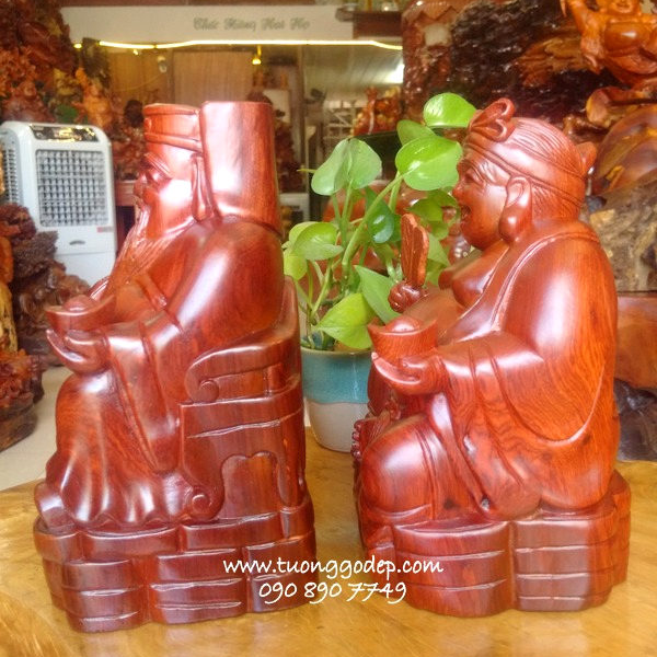 Tượng Thần tài ông địa bằng gỗ là một trong những mặt hàng được ưa chuộng nhất hiện nay, bởi tính phổ biến của nó cùng những câu chuyện lưu truyền trong dân gian đặc biệt là dân Nam Bộ mang đến cho sản phẩm này nét tính ngưỡng tôn giáo cao. Tại Việt Nam không khó để tìm thấy những bàn thờ ông thần tài trong nhà cũng như tại các hàng quán lớn. Ưu điểm của tượng ông thần tài được làm bằng gỗ nói riêng và tất cả sản phẩm khác được làm bằng gỗ nói chung đó chính là độ bền theo thời gian. Không những thế, nếu tượng ông thần tài được làm bằng loại gỗ tốt giá trị tăng theo thời gian. Bên cạnh đó, khi sử dụng tượng ông thần tài bằng gỗ sẽ có tính thẩm mỹ cao hơn, bởi tượng thần tài bằng gỗ lúc nào cũng đẹp hơn so với tượng ông thần tài bằng đá hoặc bằng sứ.