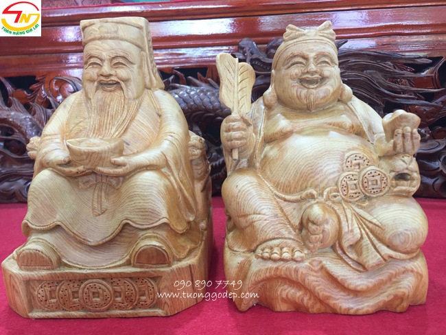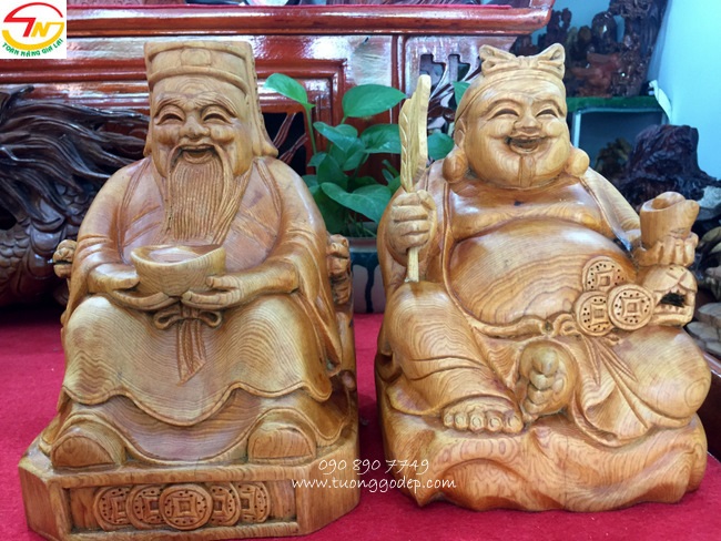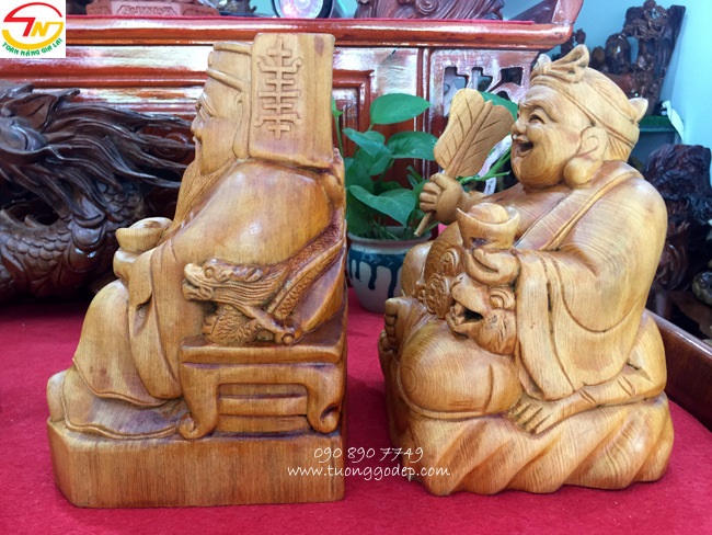 Tượng thần Tài ông Địa bằng gỗ pơ mu