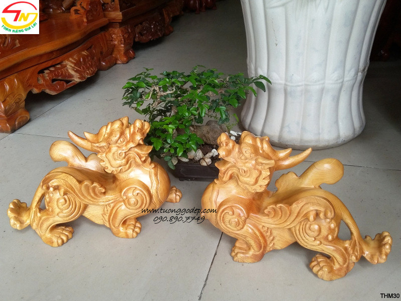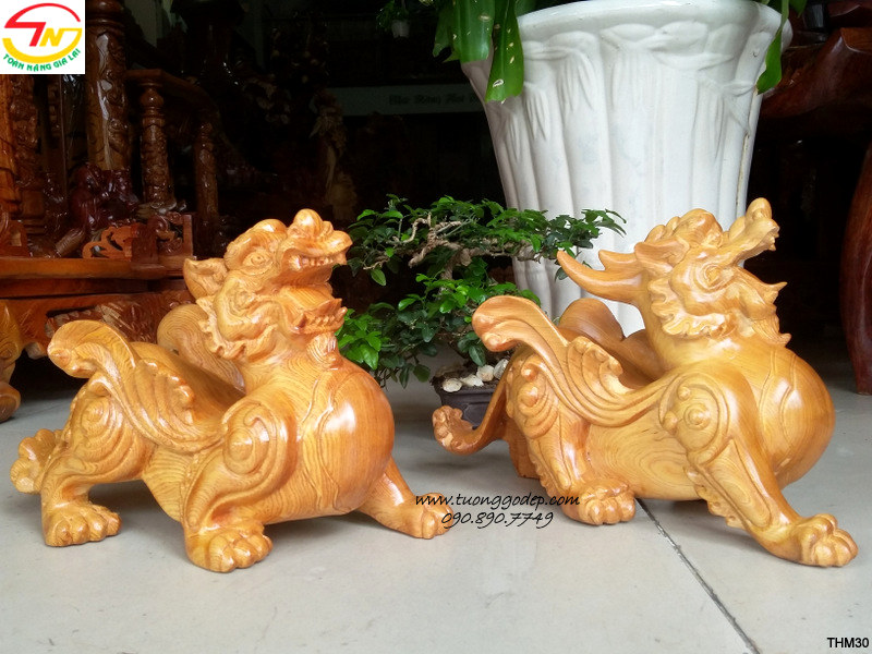 Tượng Tỳ Hưu gỗ Pơ-mu